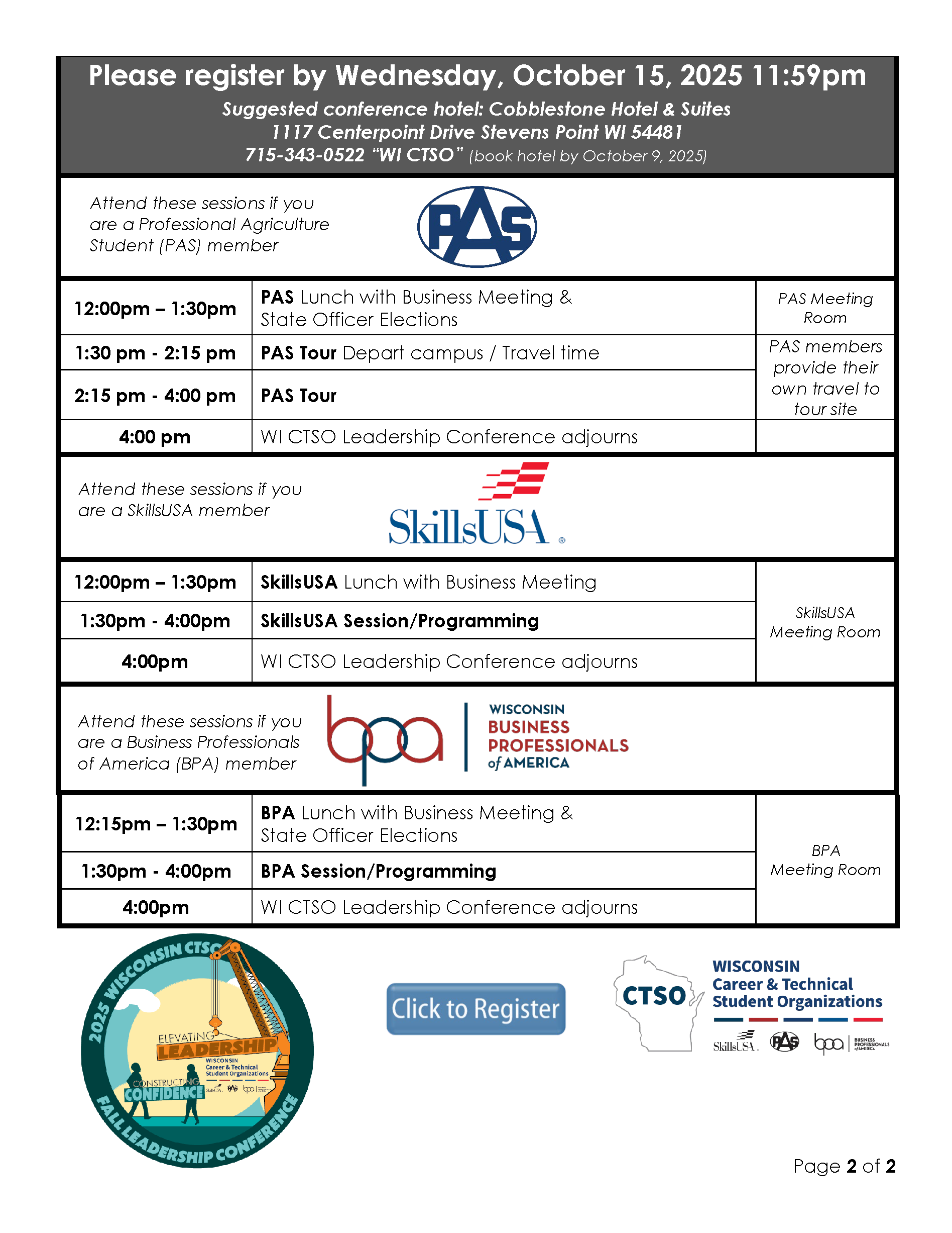 Through BPA, Wisconsin students compete at the regional, state, and national levels in more than 50 Workplace Skills Assessment Program events, engage in community and leadership service activities, and meet business students across the state and country through participation in our programs.
